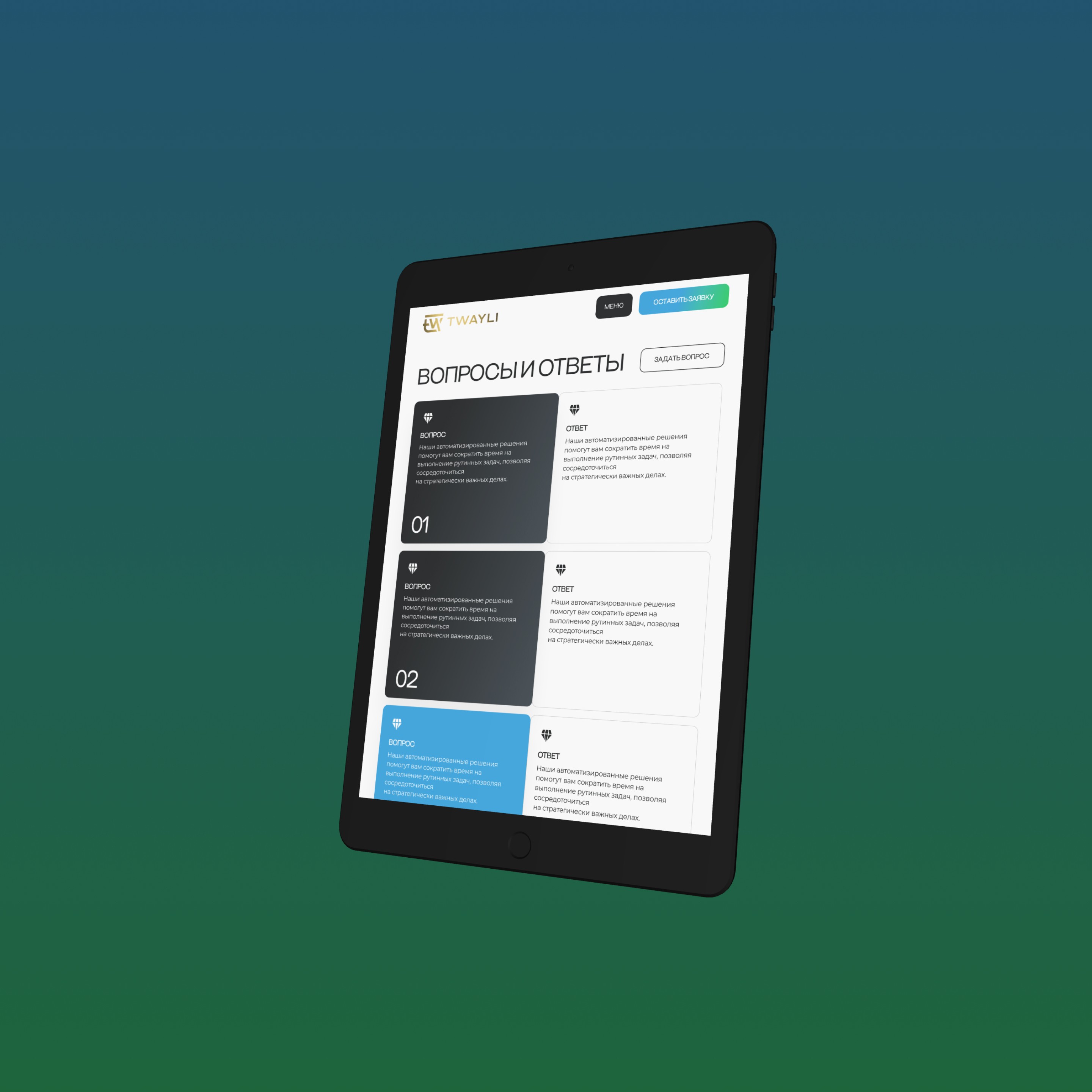 Основной целью стало создание современного сайта, который вызывает доверие у пользователей с первых секунд взаимодействия. Дизайн должен был транслировать профессионализм, надежность и технологичность компании, а также способствовать положительному восприятию бренда.