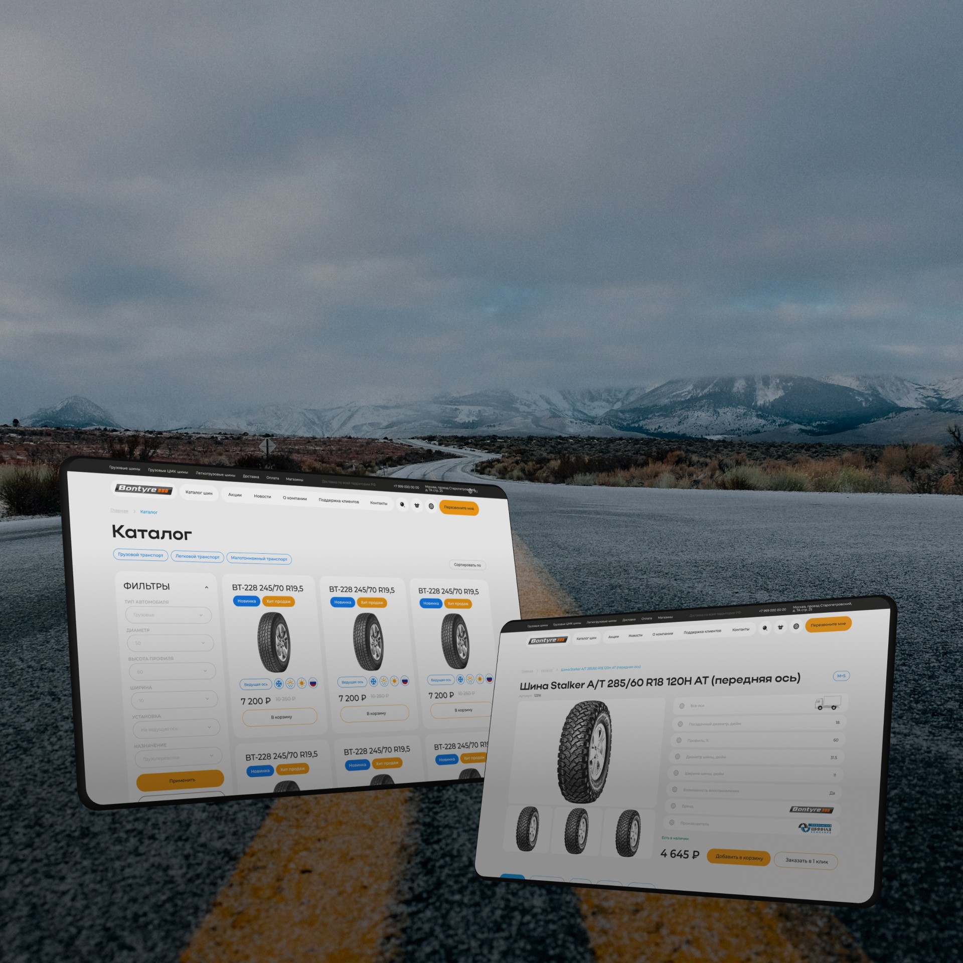 Интернет-магазин шин с современным и минималистичным дизайном, который обеспечивает интуитивную навигацию, четкую структуру и удобный процесс оформления заказа