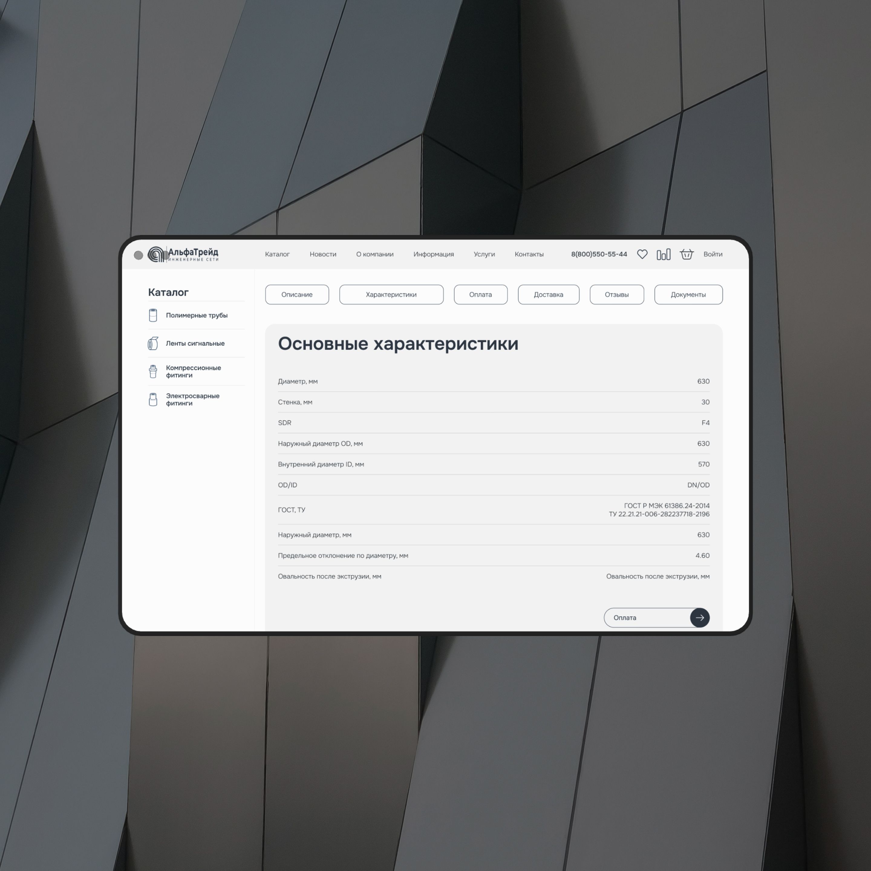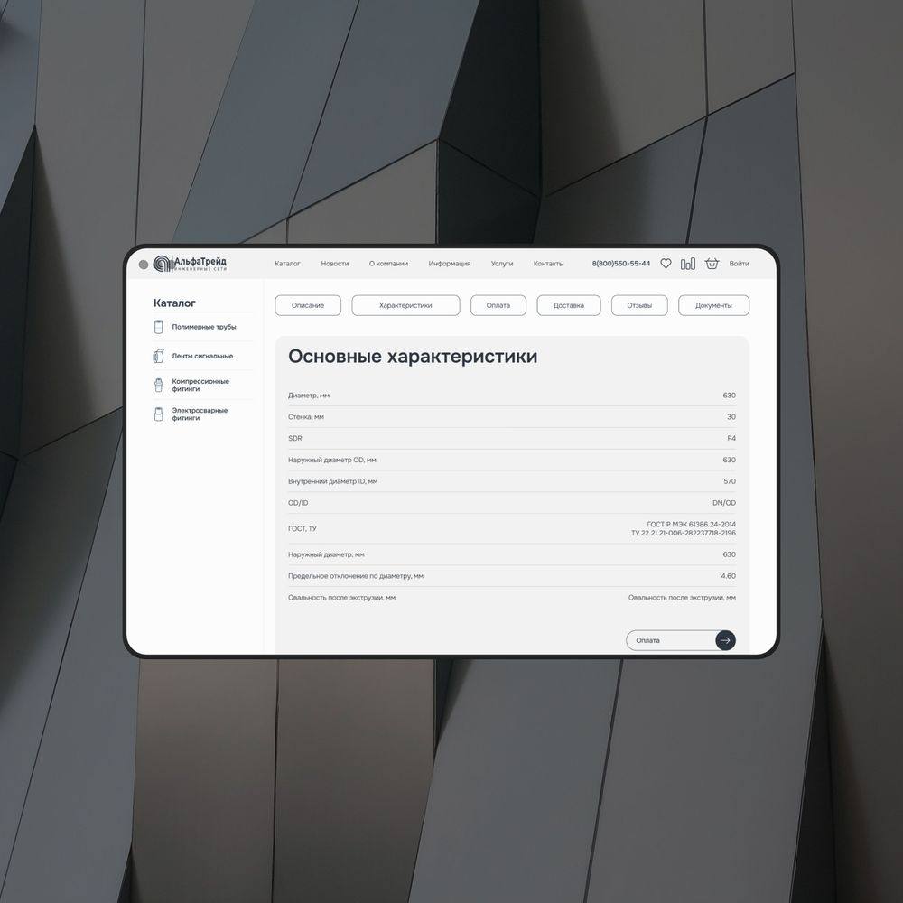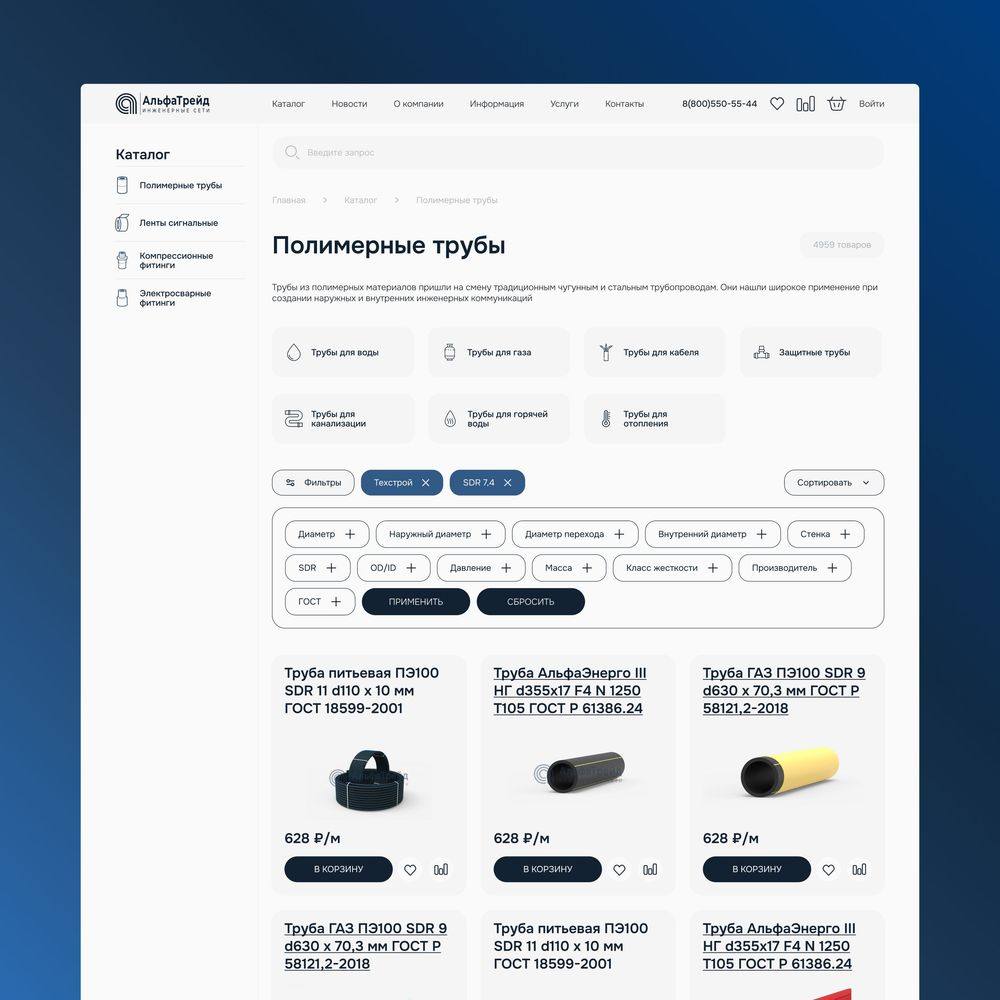 Компания, специализирующаяся на производстве и продаже полимерных труб и фитингов для воды и газа, обратилась с запросом на редизайн интернет-магазина