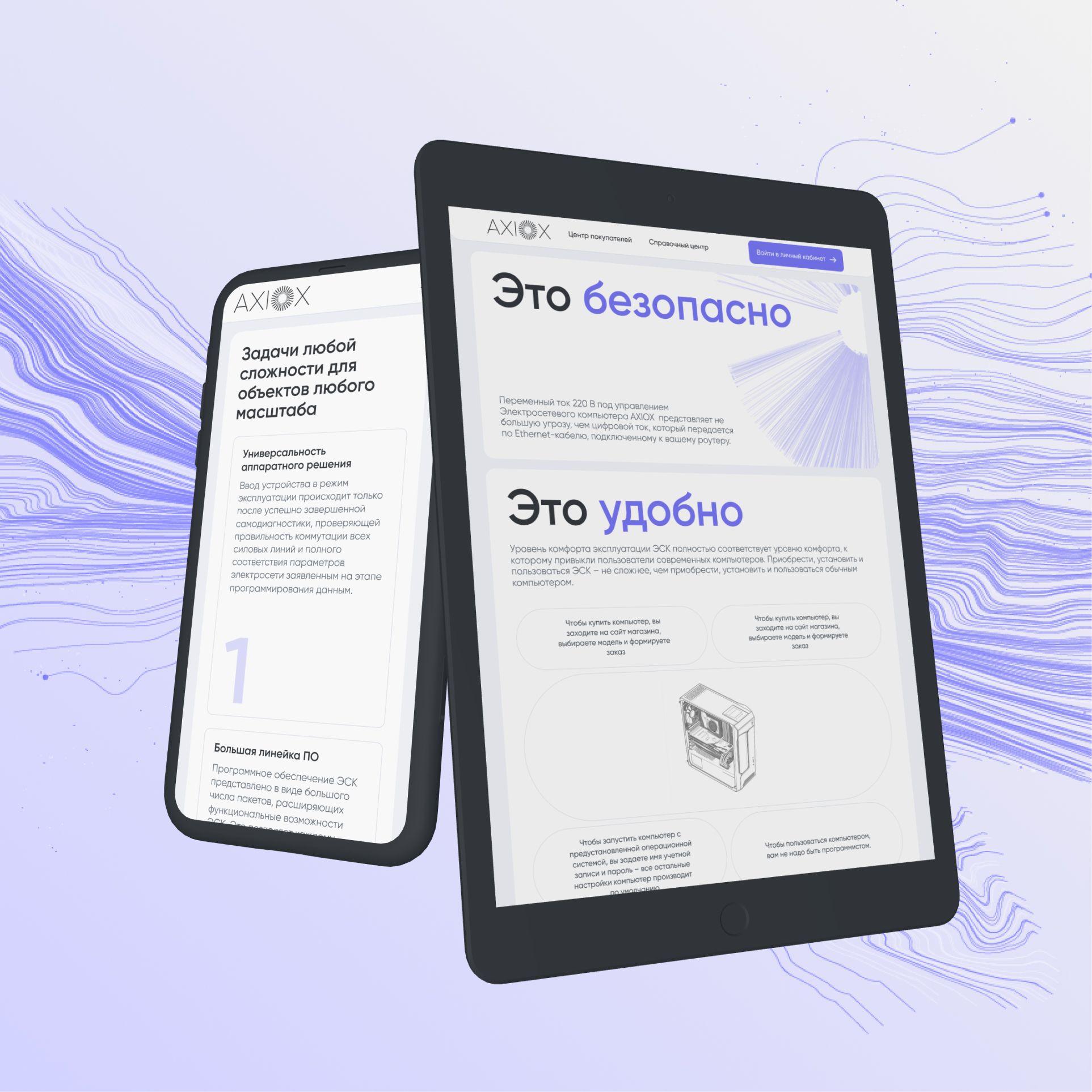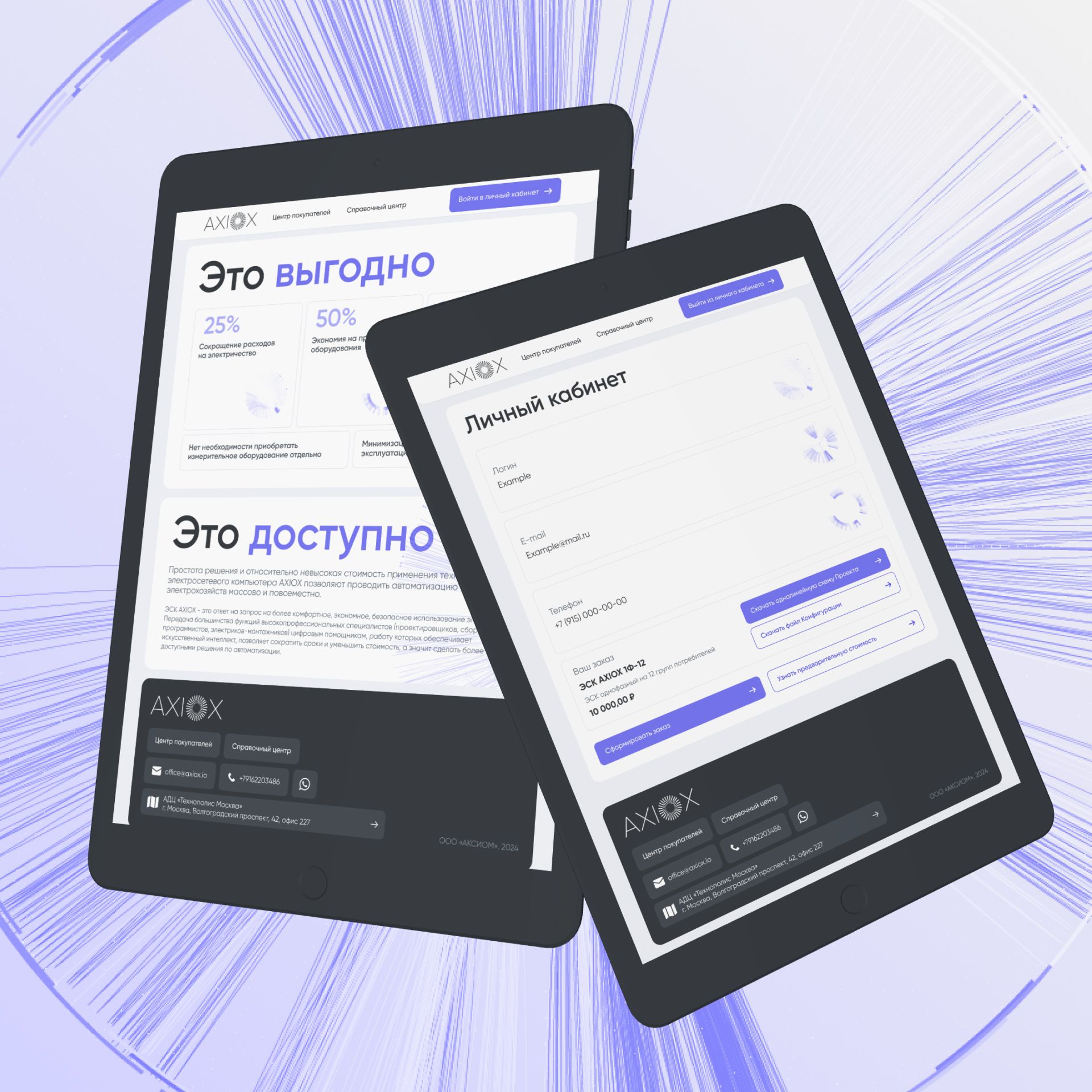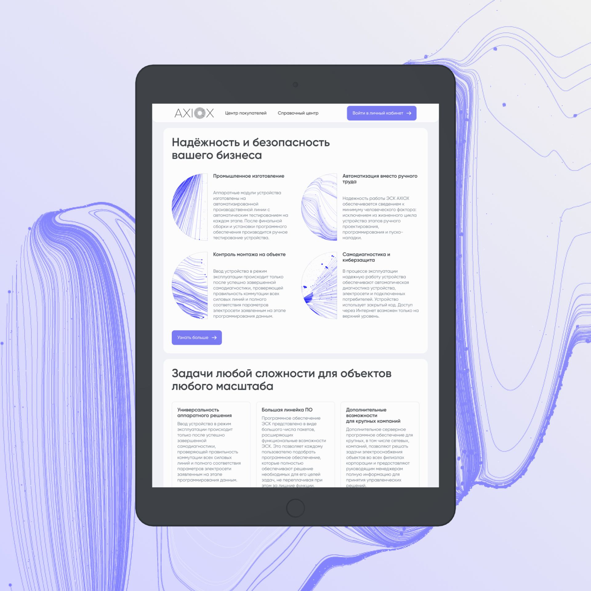 Минималистичный дизайн с акцентом на ключевые преимущества продуктов и решений, крупные изображения и инфографику