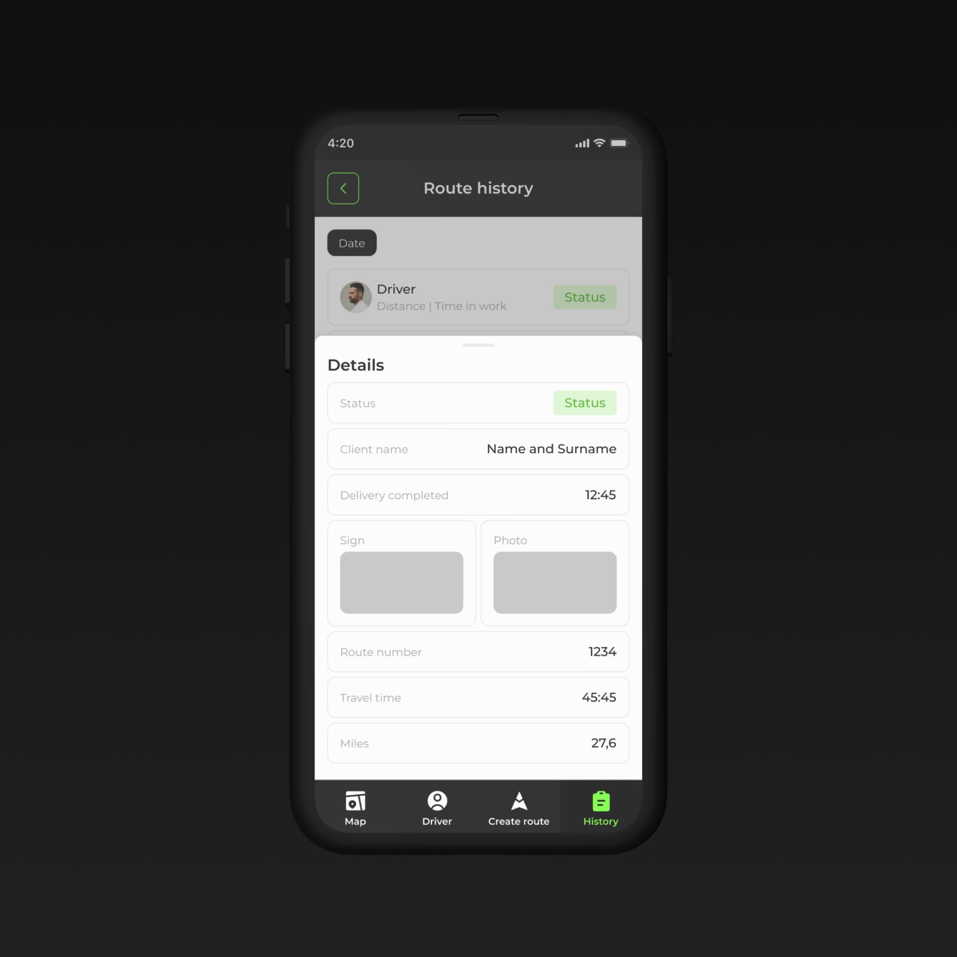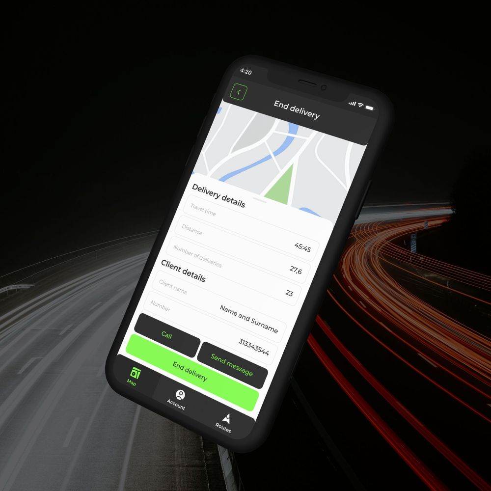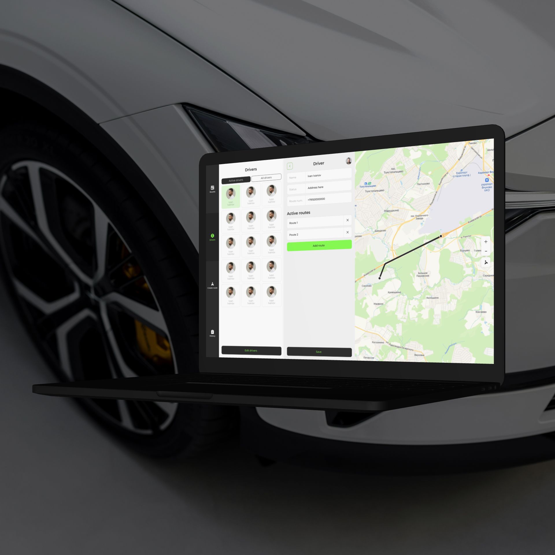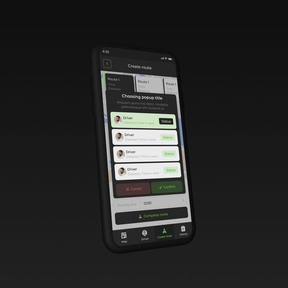 Четкая иерархия данных: маршруты, водители, история доставок. Простая навигация и удобные фильтры для поиска маршрутов и водителей. Адаптивный дизайн для удобного использования на разных устройствах