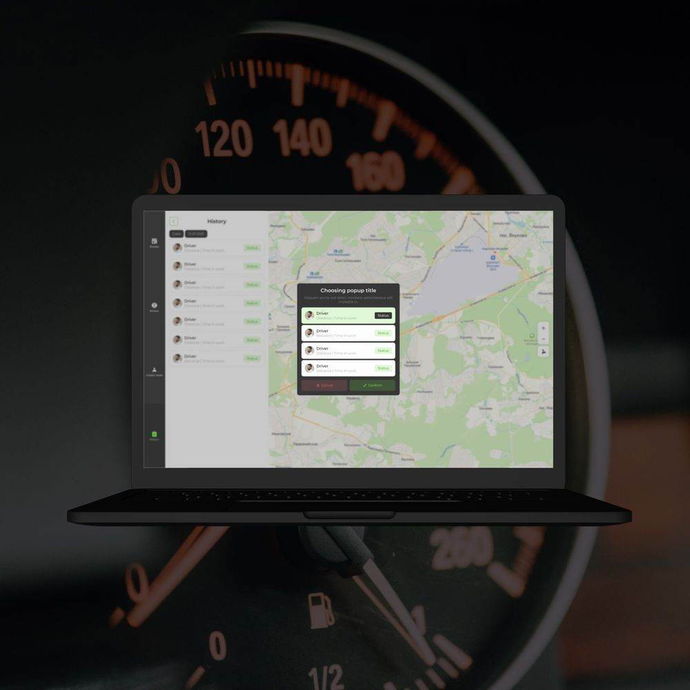 Панель управления с картой и списком маршрутов. Возможность строить и редактировать маршруты. Интерактивная карта для отслеживания местоположения водителей. История маршрутов с детальной аналитикой