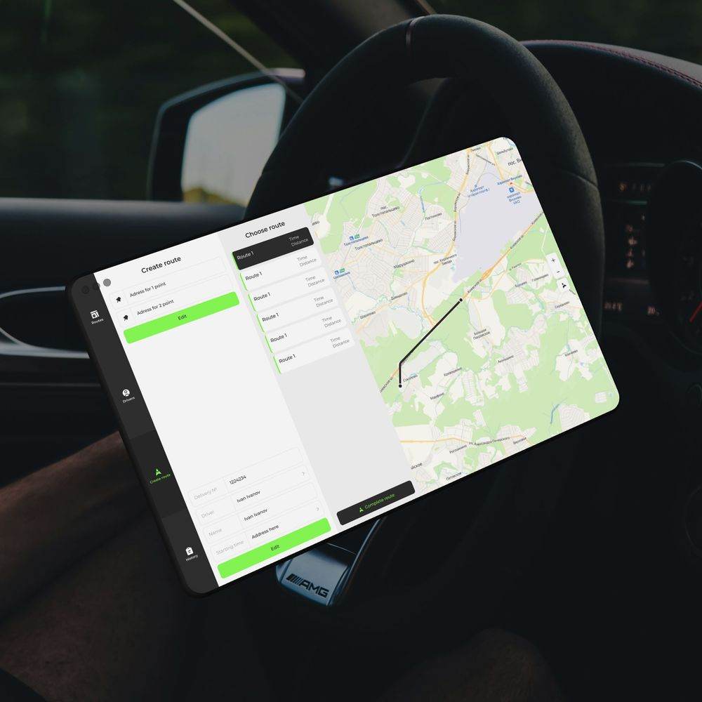 Разработка двух интерфейсов: Веб-версии для администраторов — планирование, контроль, редактирование маршрутов и связь с водителями. Мобильного приложения для водителей — управление маршрутом, навигация, возможность корректировки порядка доставок