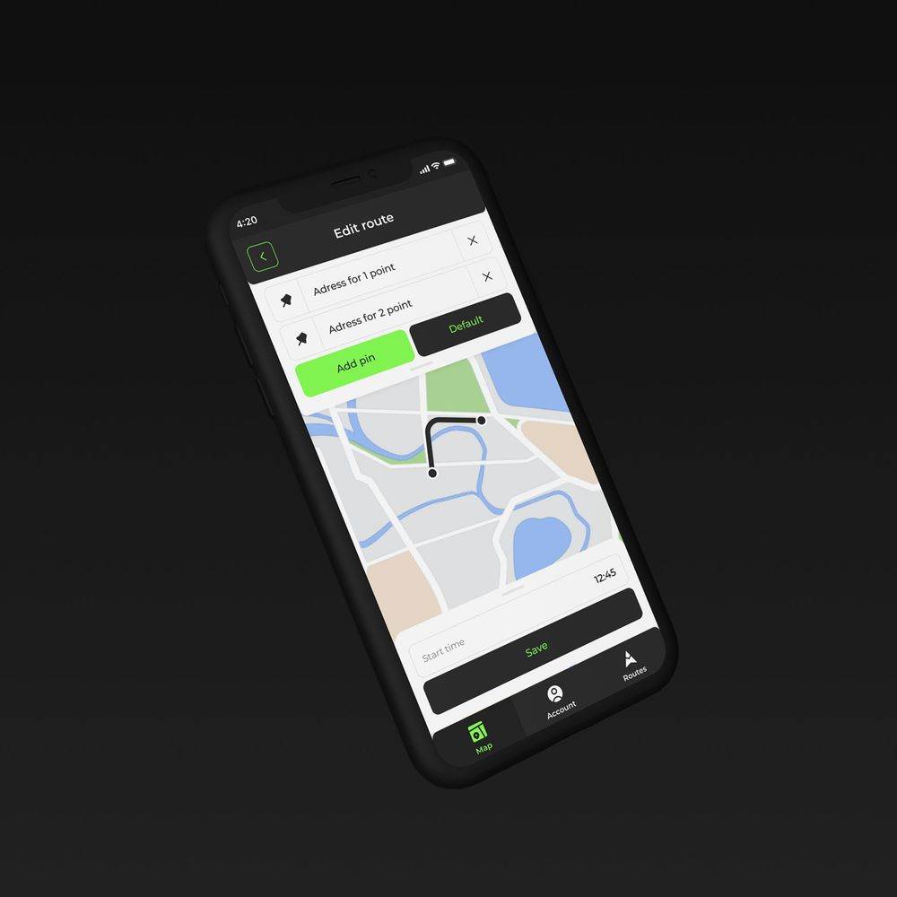 Крупные иконки и кнопки для удобства использования на ходу. Понятные визуальные элементы для маршрутов и точек доставки. Возможность изменять порядок точек простым перетаскиванием